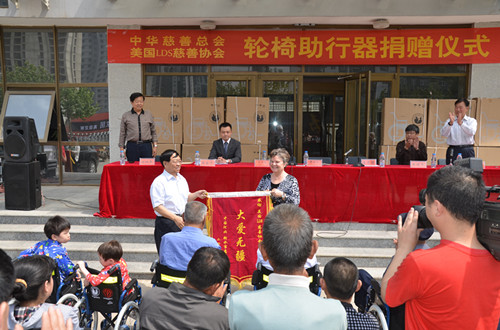 市政协原副主席 市慈善总会名誉会长王守信同志向美国LDS慈善协会赠送锦旗